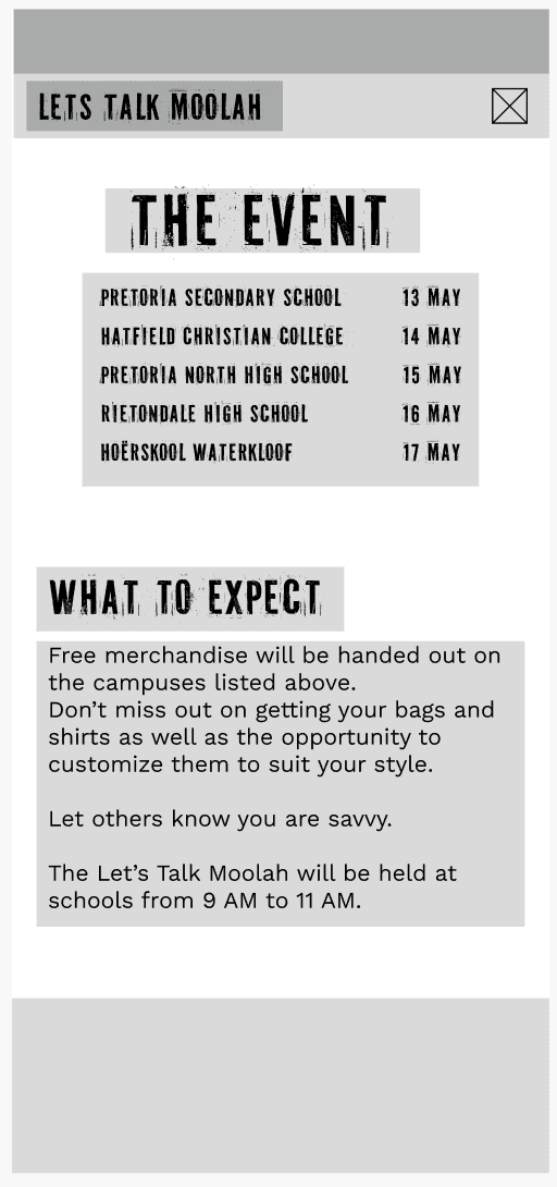 Working on Let’s Talk Moola helped me understand how powerful design can be as an educational tool. I learned how to balance visual storytelling with usability, and how to structure information in a way that feels approachable rather than overwhelming. It also strengthened my ability to design across platforms while keeping the experience cohesive.