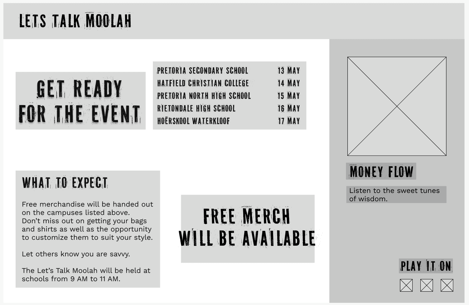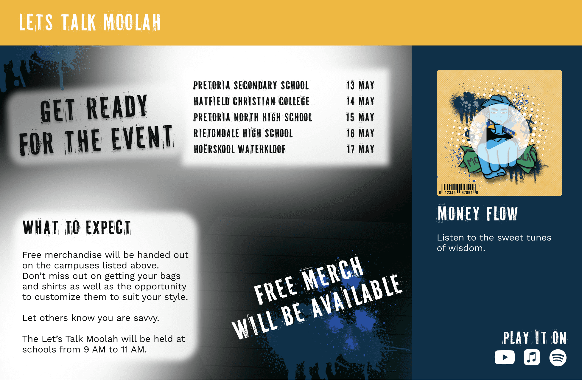 We designed an interactive financial education experience that uses real-world examples, school-based activations, and digital content to make money topics more approachable, practical, and engaging for students which included posters, murals, and an interactive web experience.