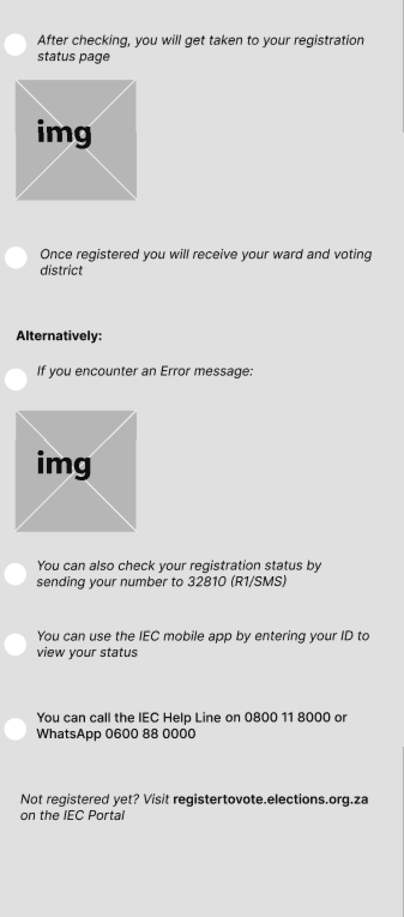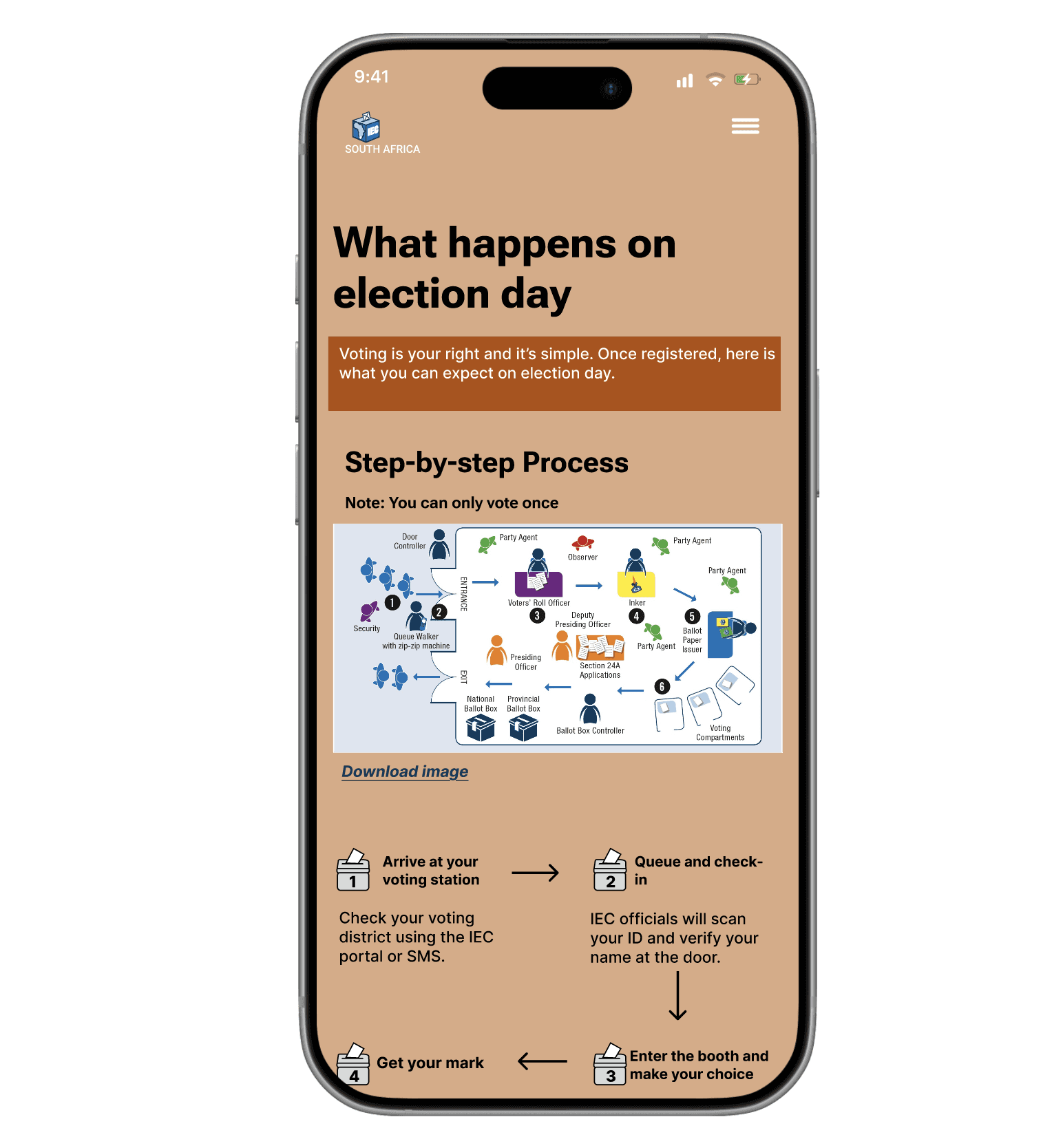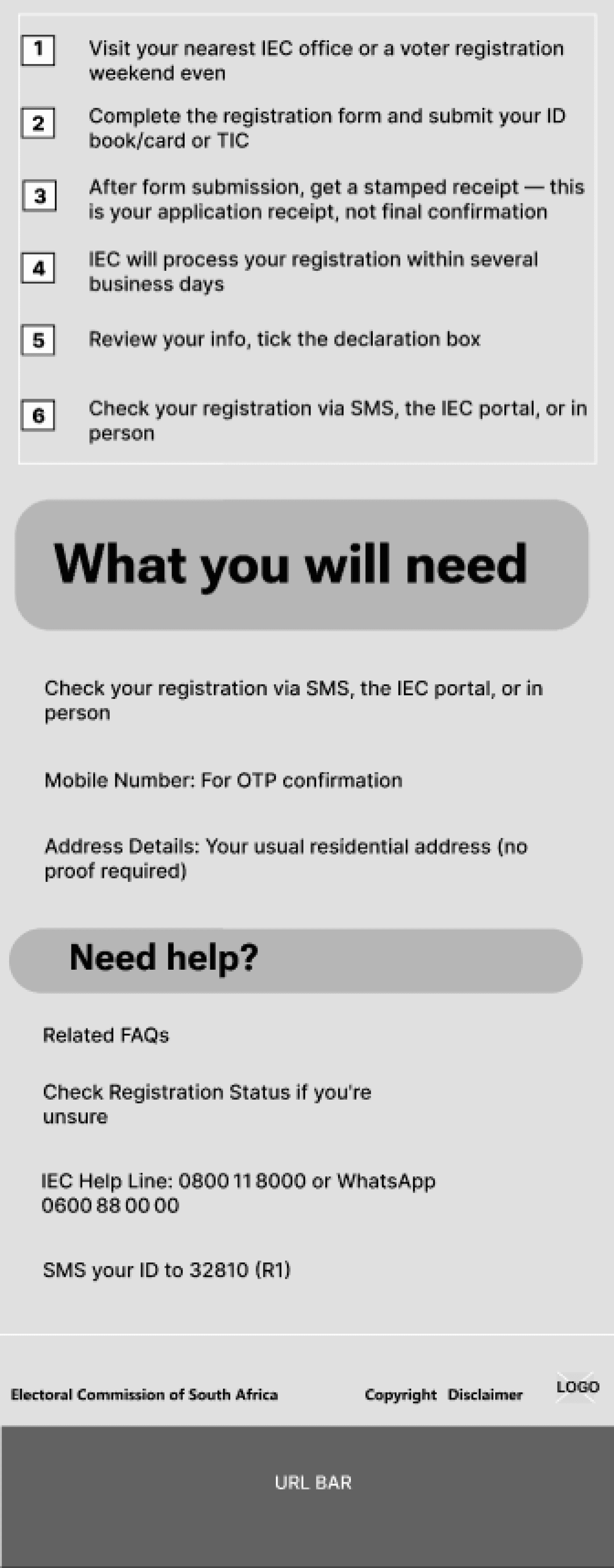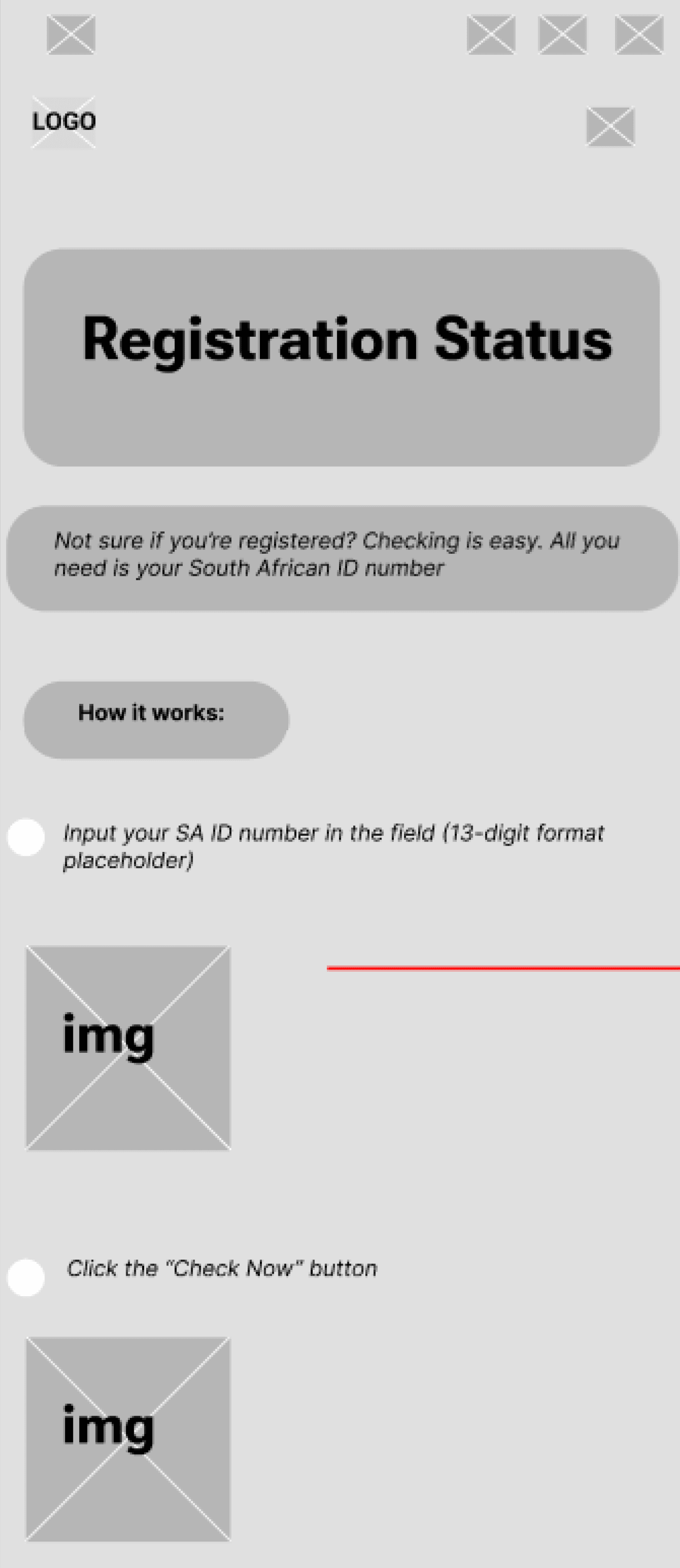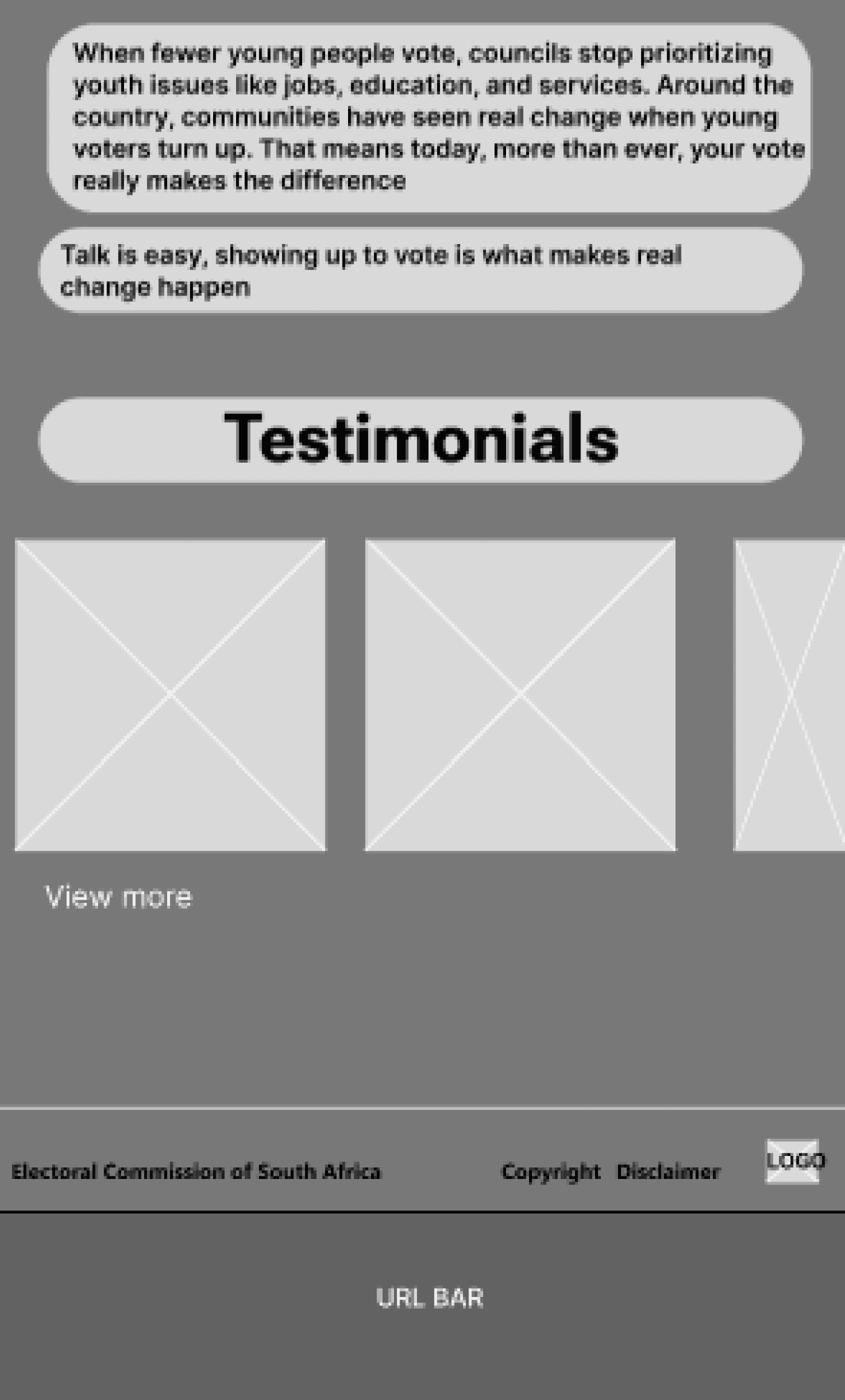 This project focused on designing a mobile voter education platform for South African youth. With turnout among 18–29 year-olds below 20%, the goal was to create a clear, impartial, and accessible space where young people can learn about registration, the voting process, and their rights—while encouraging greater participation in future elections.